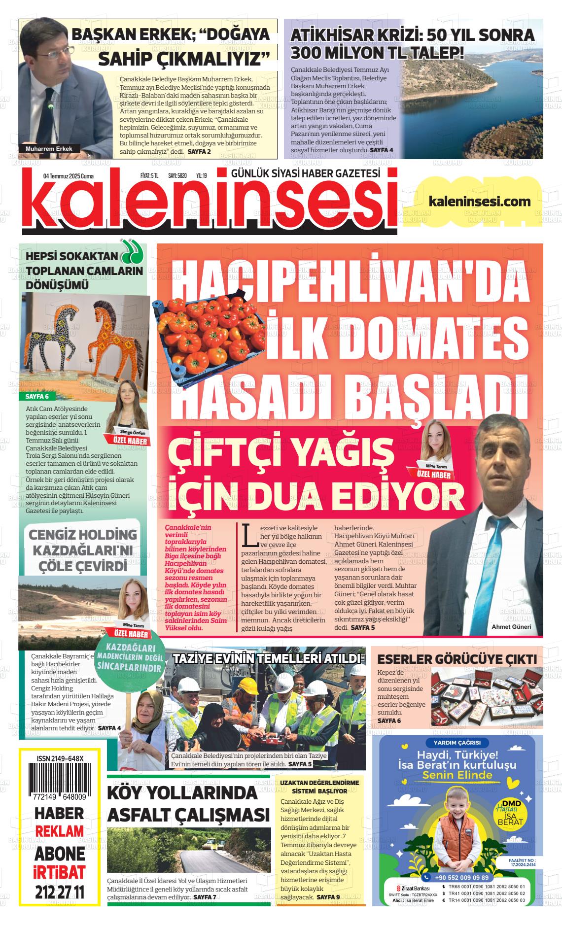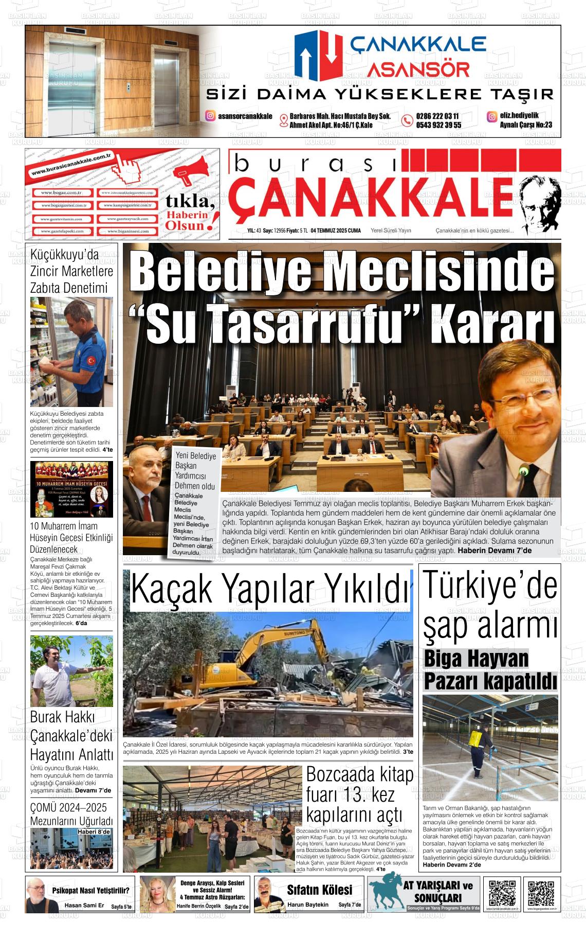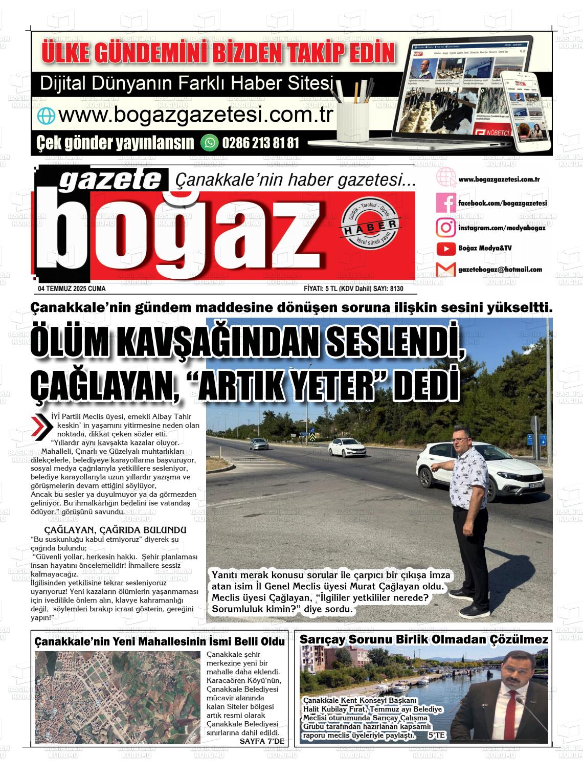Çanakkale Yerel Gazeteleri 09 Mart 2026, Pazartesi Günü Manşeti