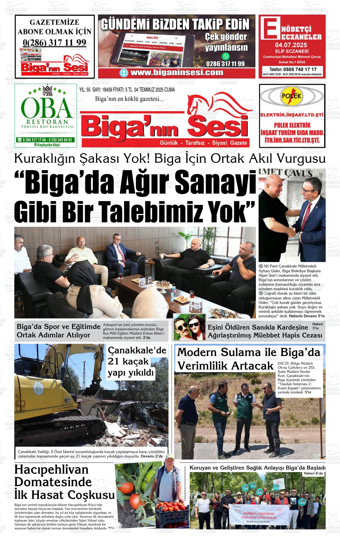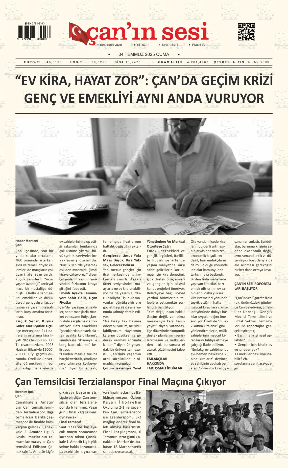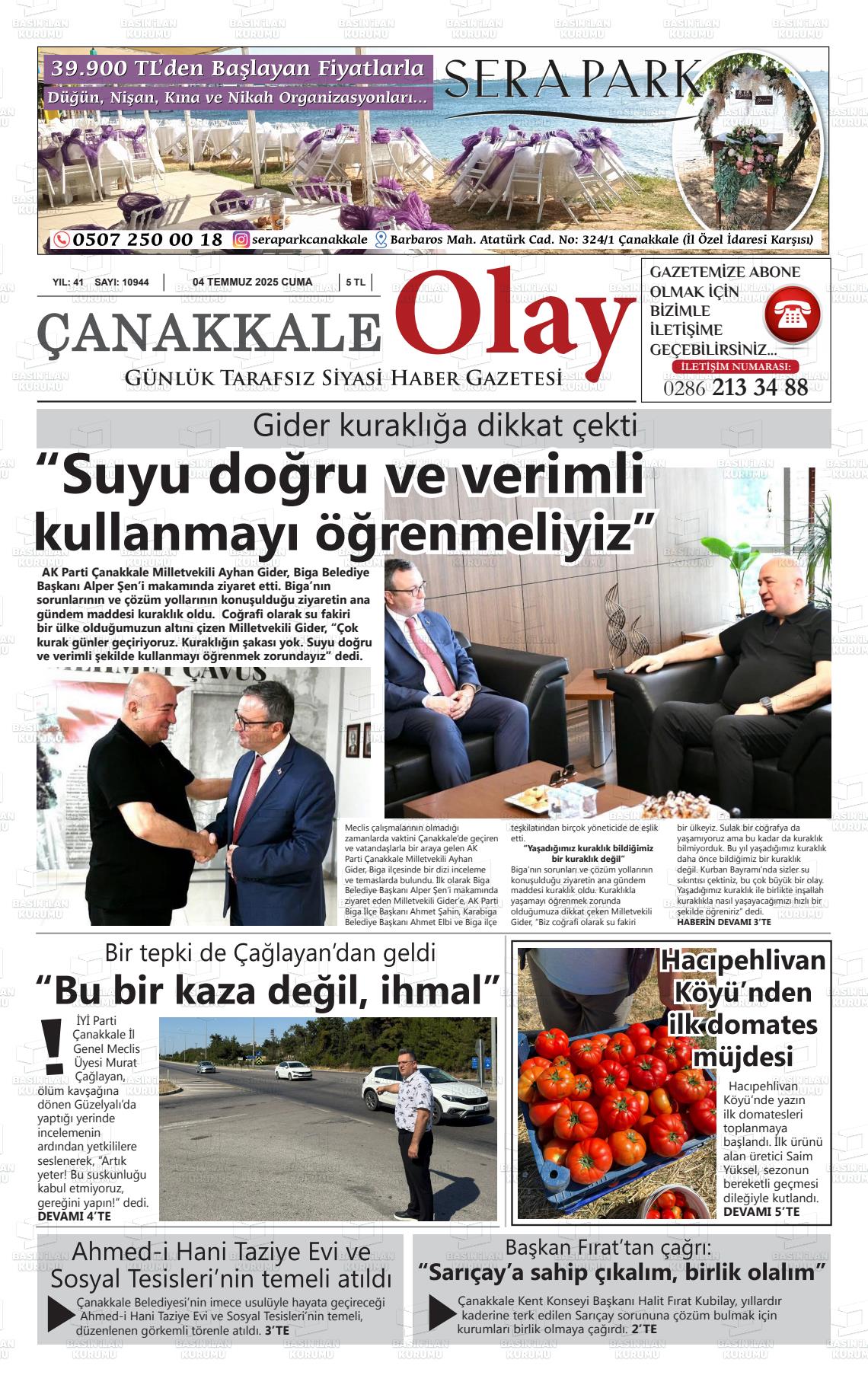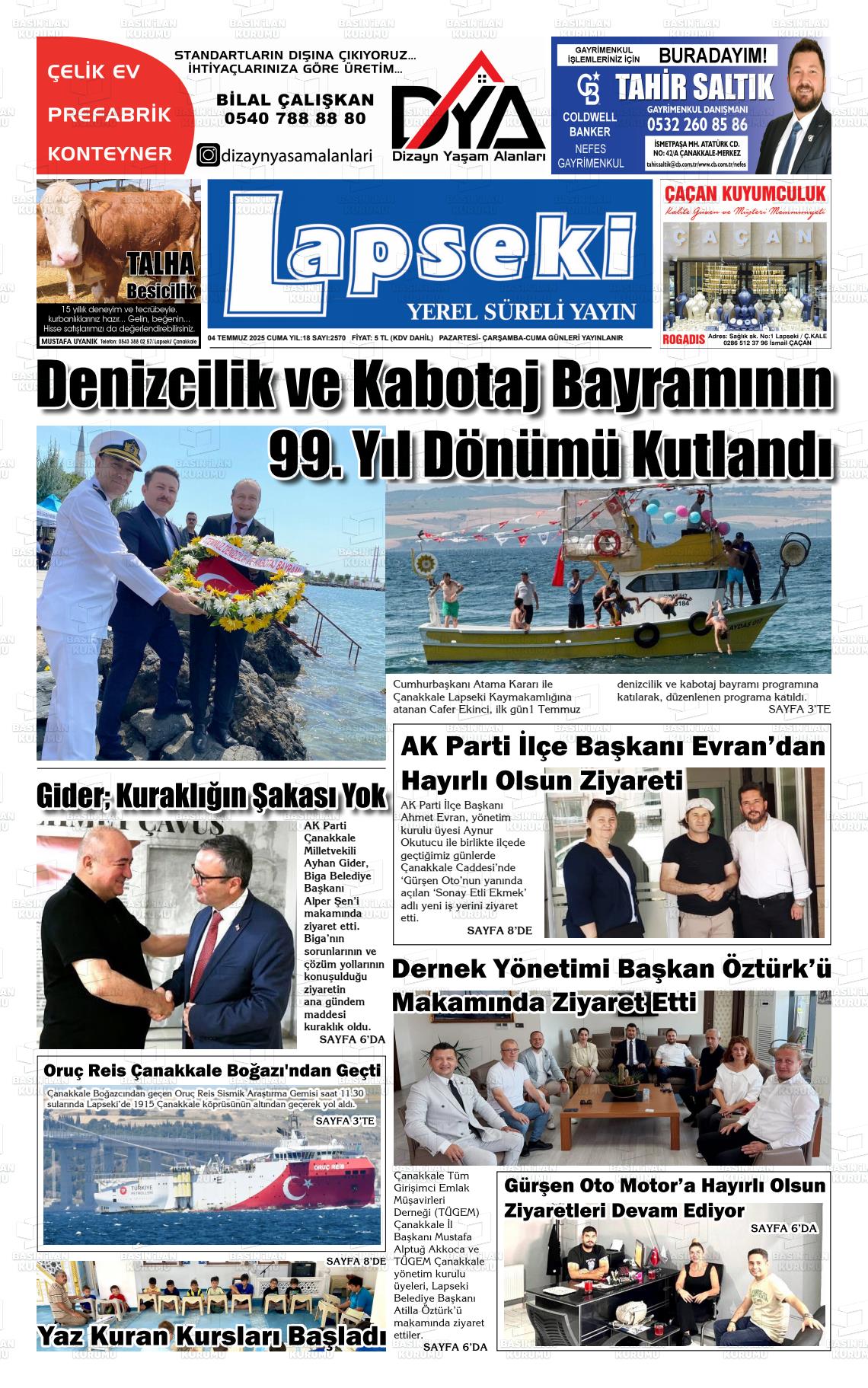 Çanakkale Yerel Gazeteleri 09 Mart 2026, Pazartesi Günü Manşeti