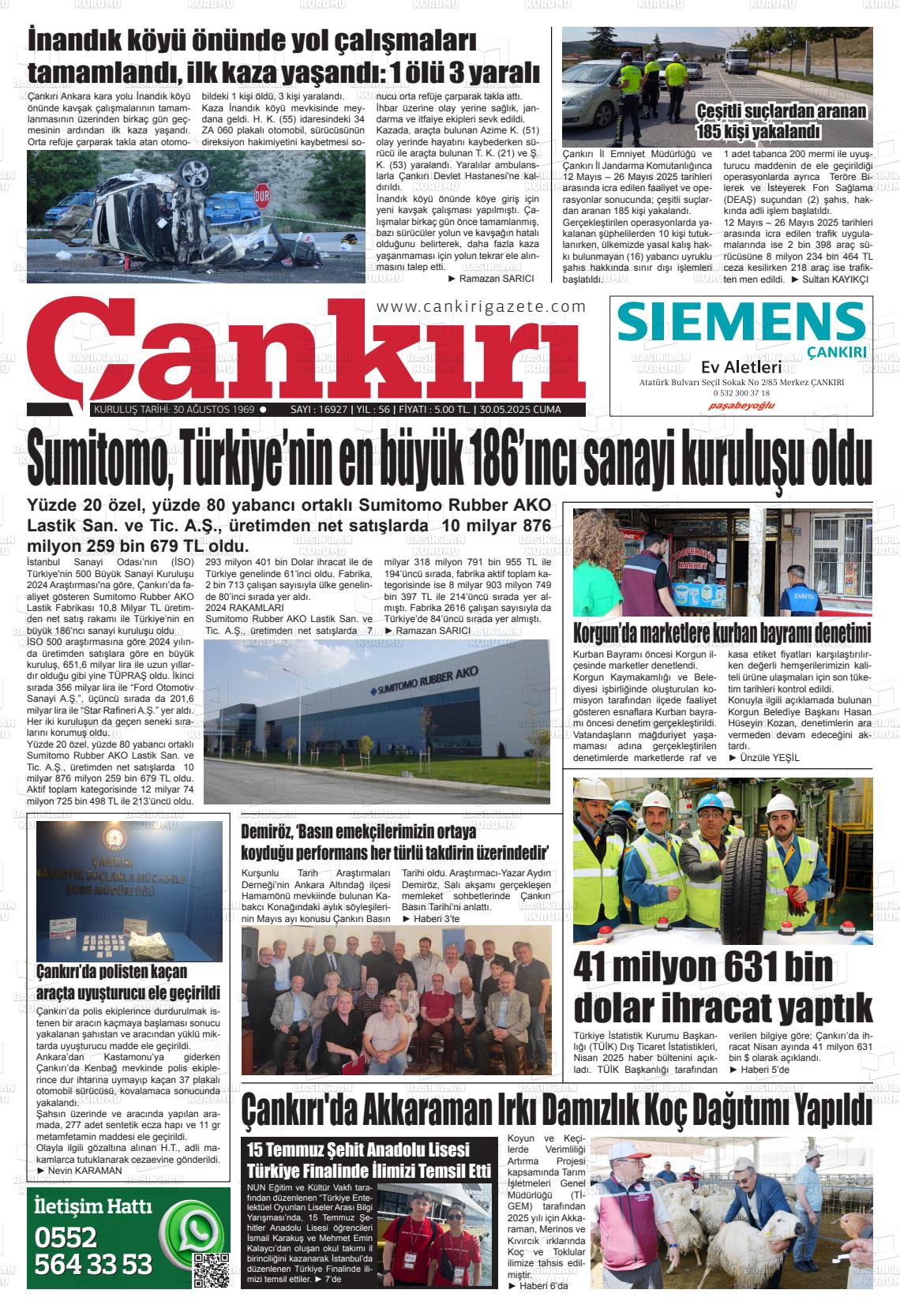 Çankırı Yerel Gazeteleri 05 Şubat 2026, Perşembe Günü Manşeti