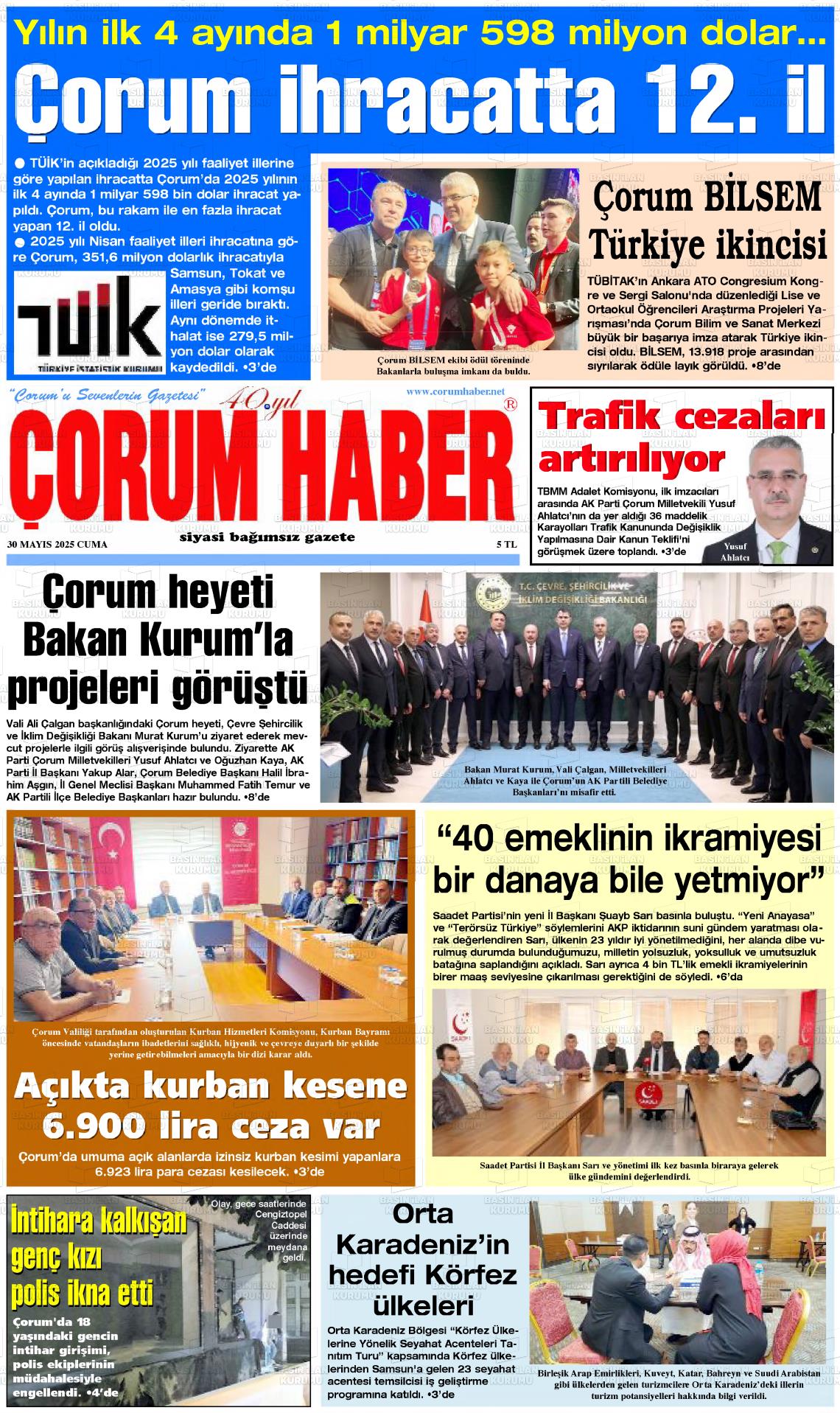 Çorum Yerel Gazeteleri 10 Mart 2026, Salı Günü Manşeti