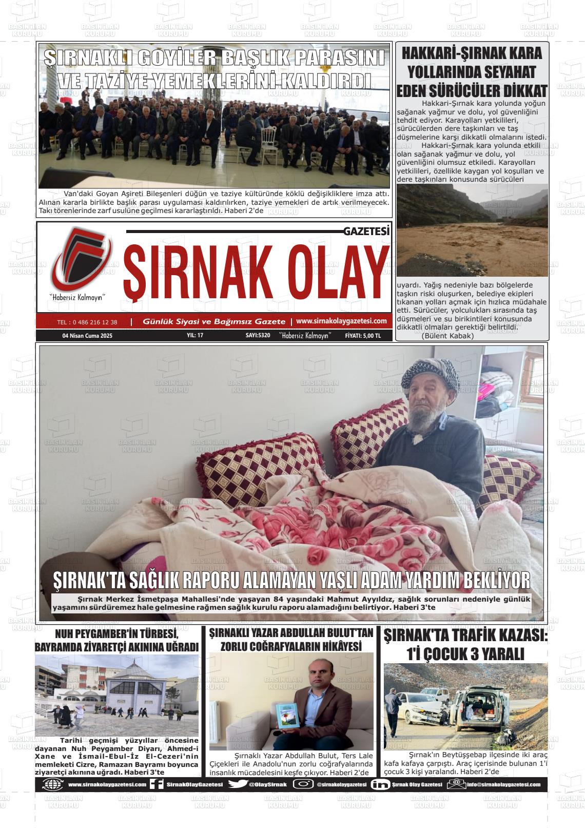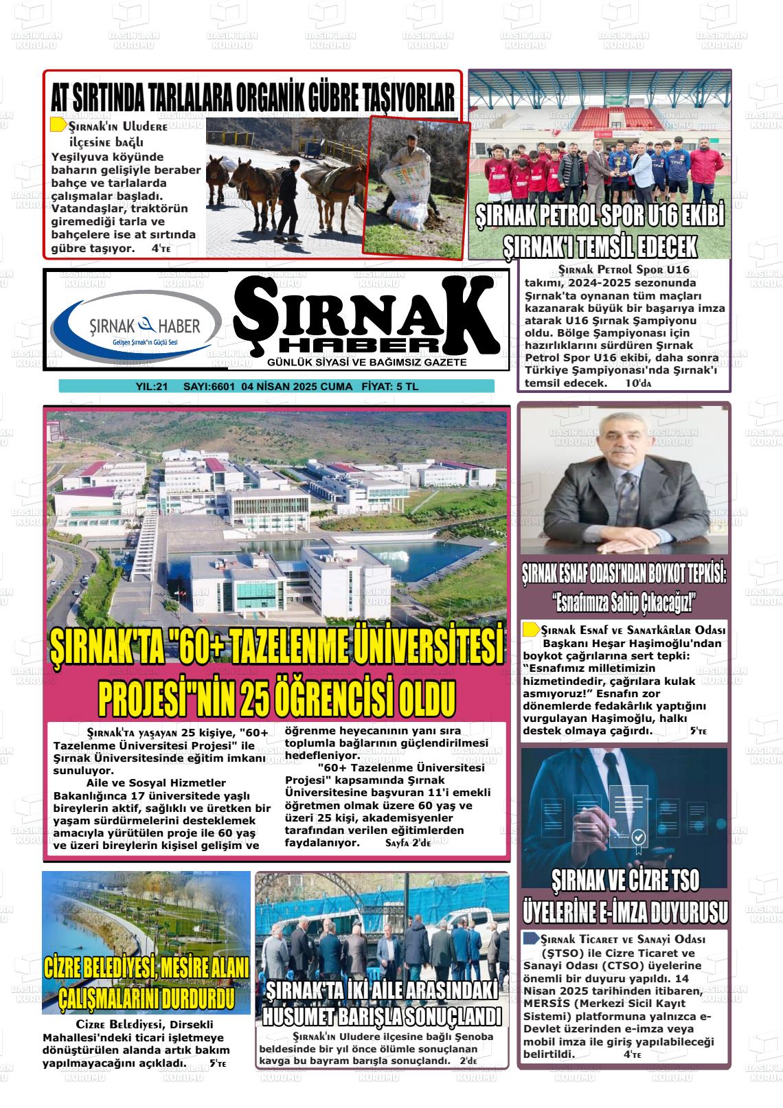 Şırnak Yerel Gazeteleri 09 Mart 2026, Pazartesi Günü Manşeti