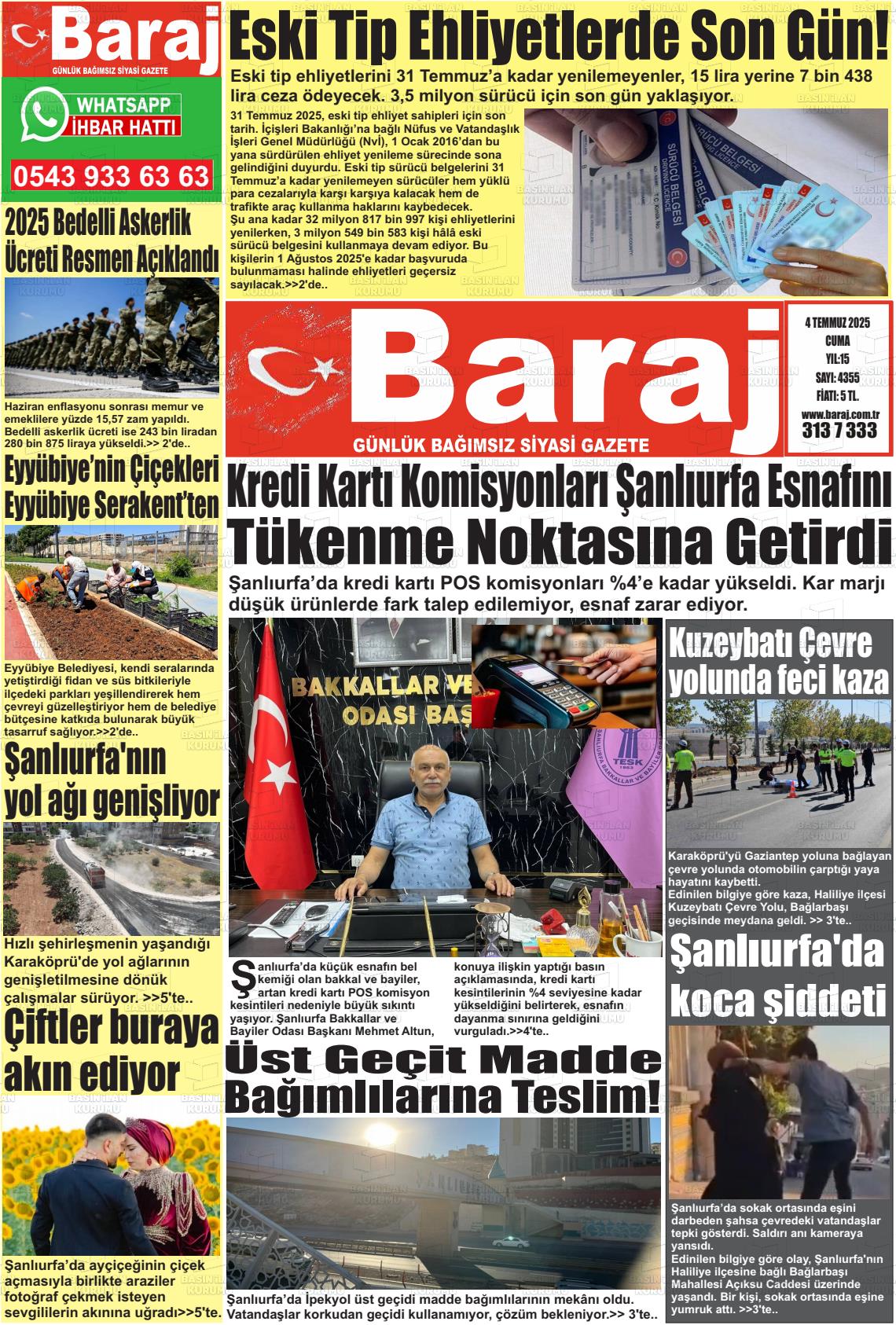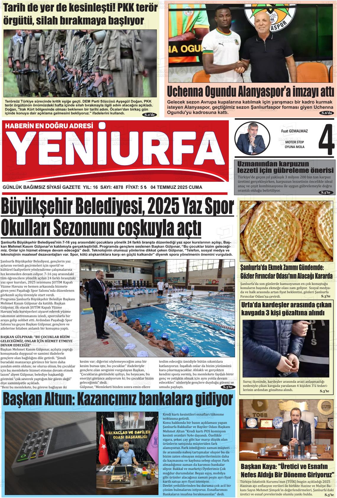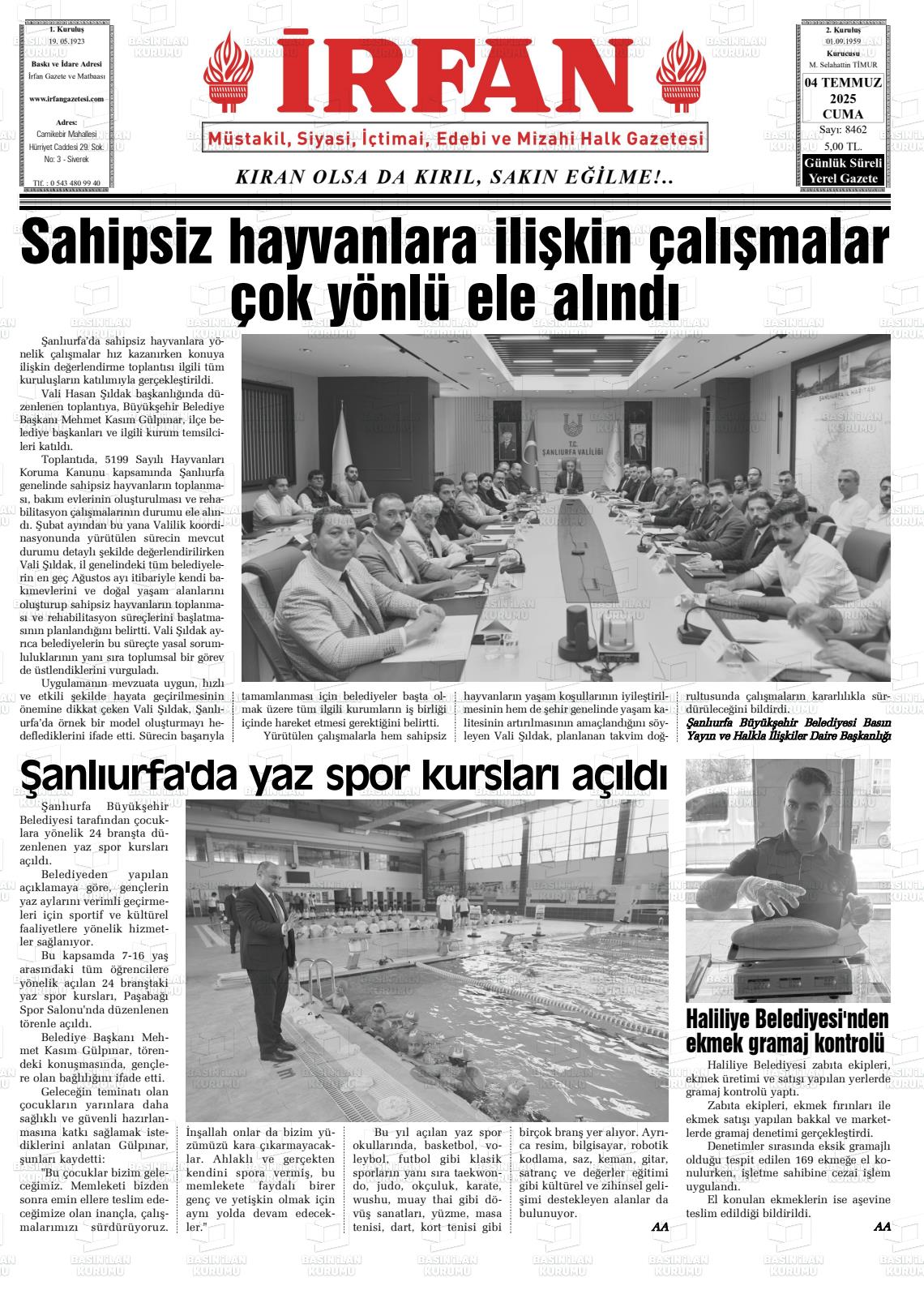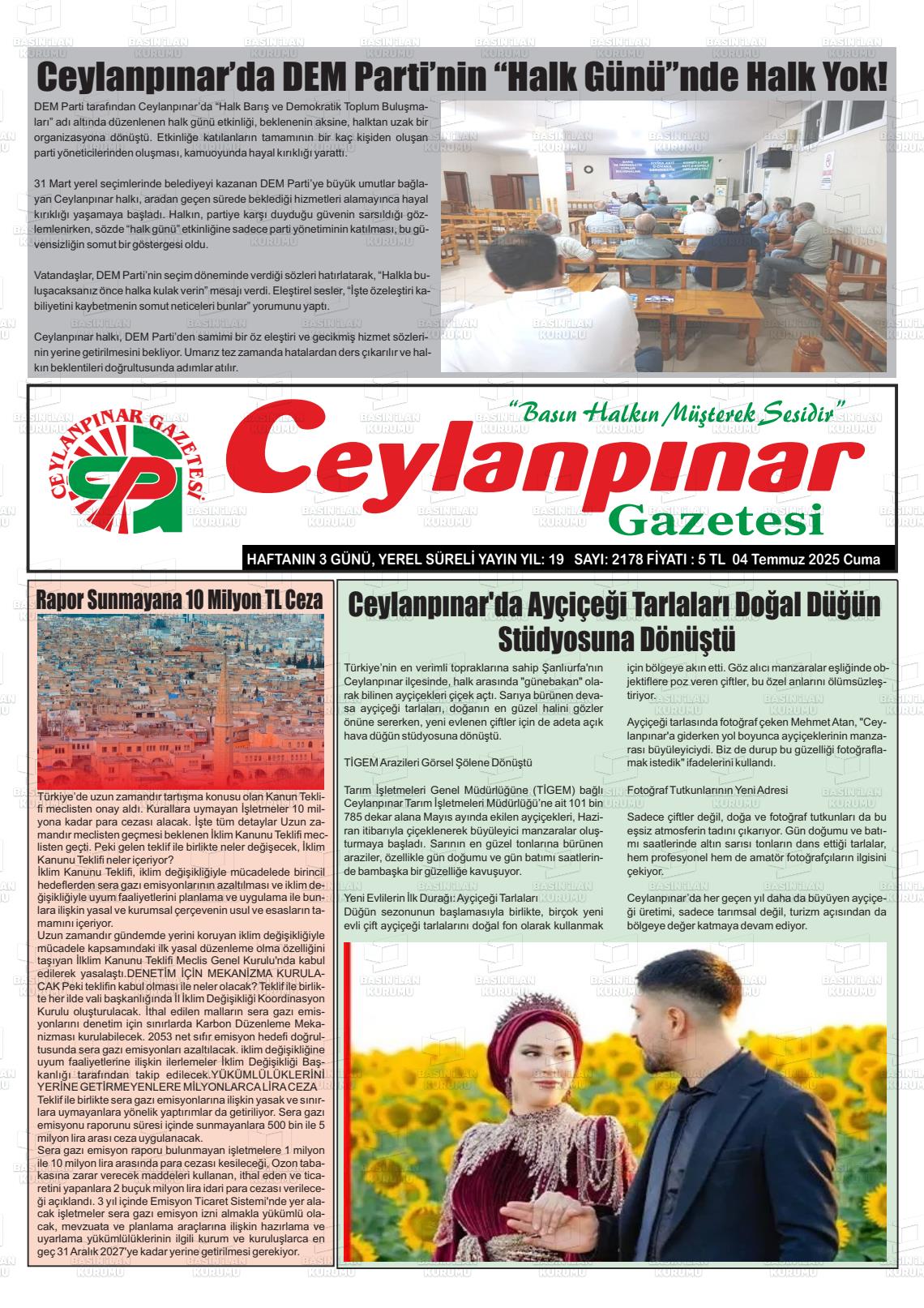 Şanlıurfa Yerel Gazeteleri 09 Mart 2026, Pazartesi Günü Manşeti
