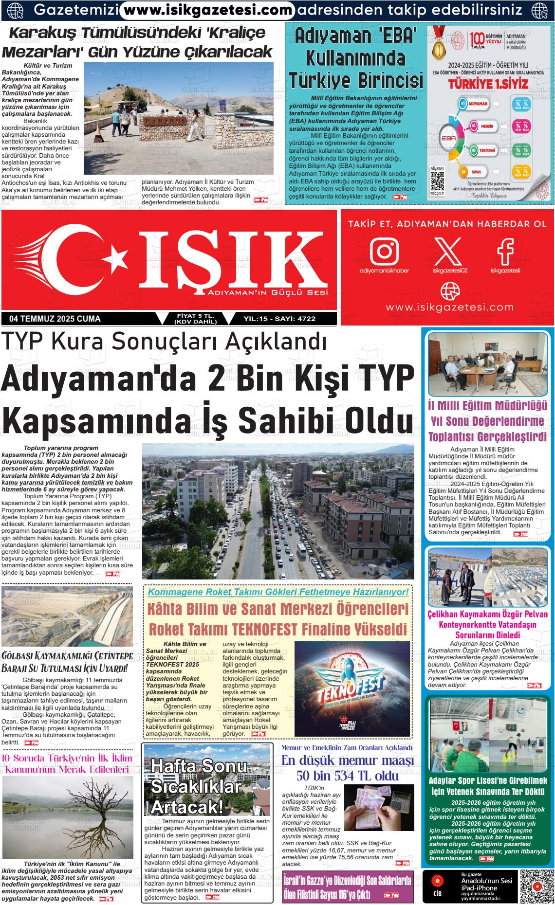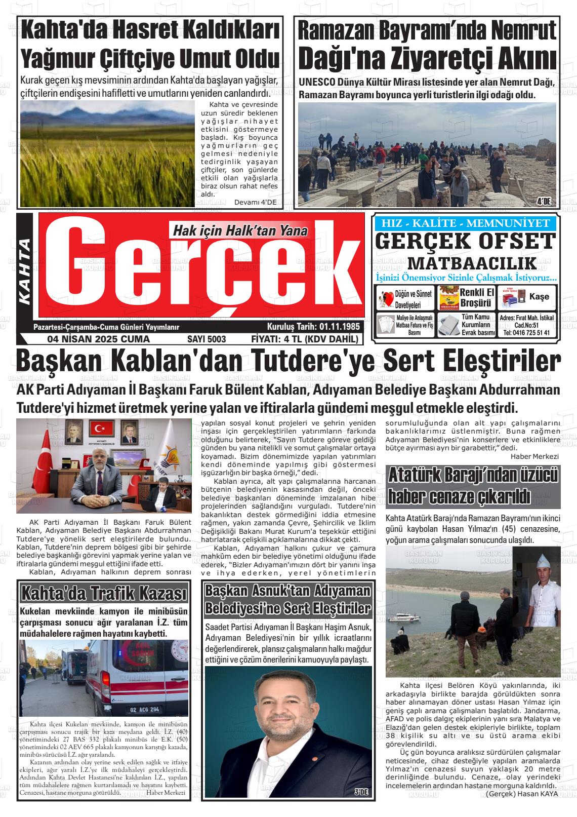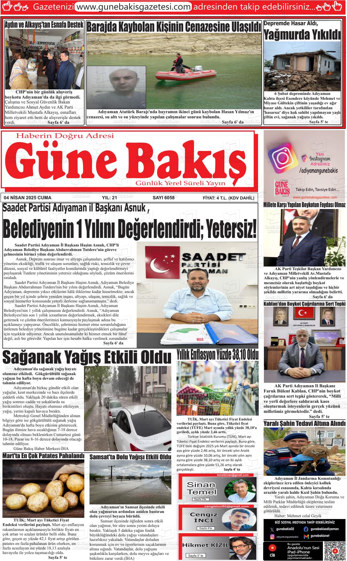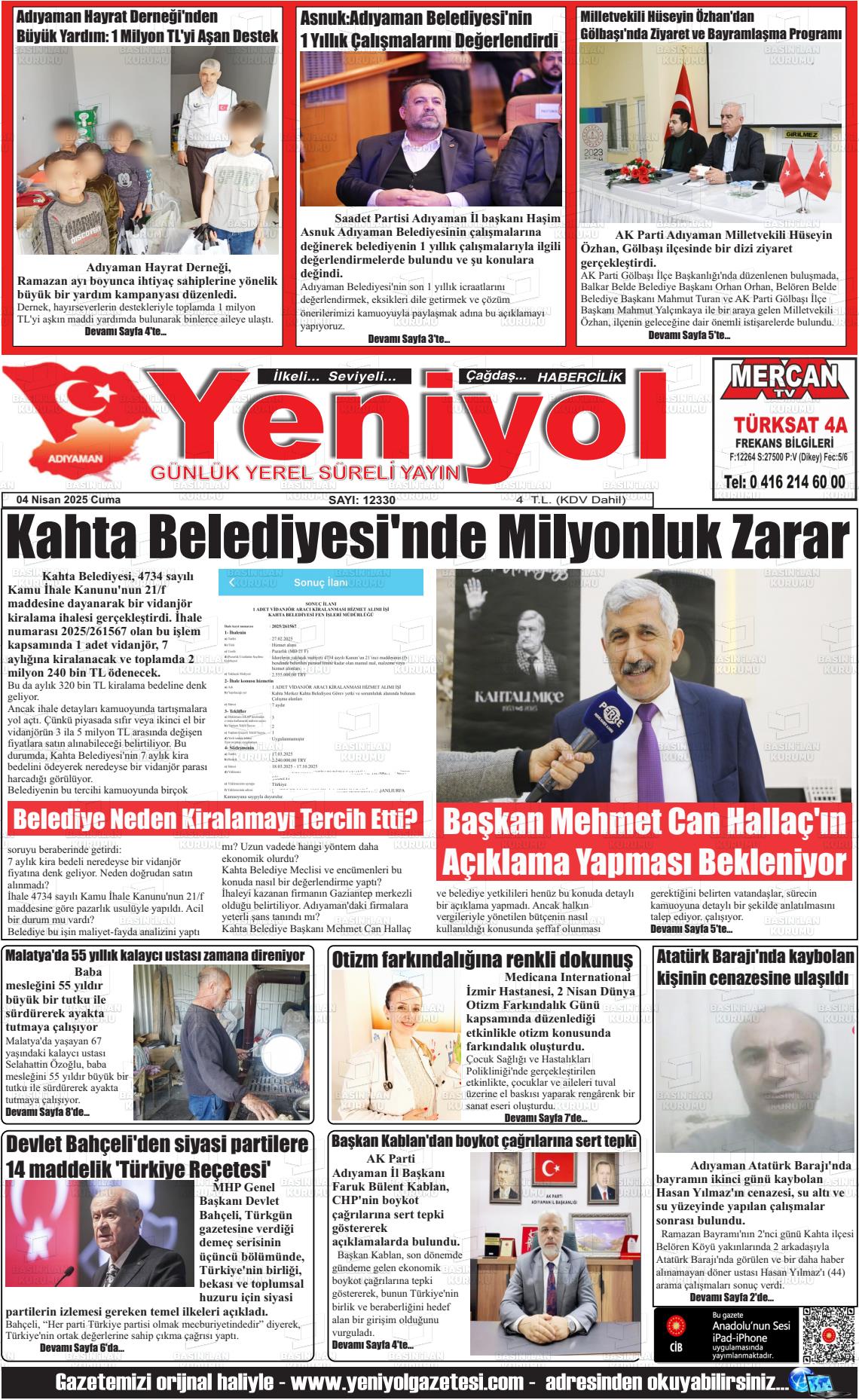 Adıyaman Yerel Gazeteleri 09 Mart 2026, Pazartesi Günü Manşeti
