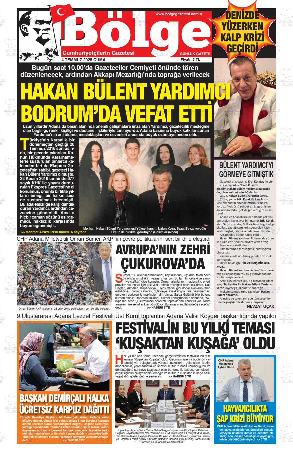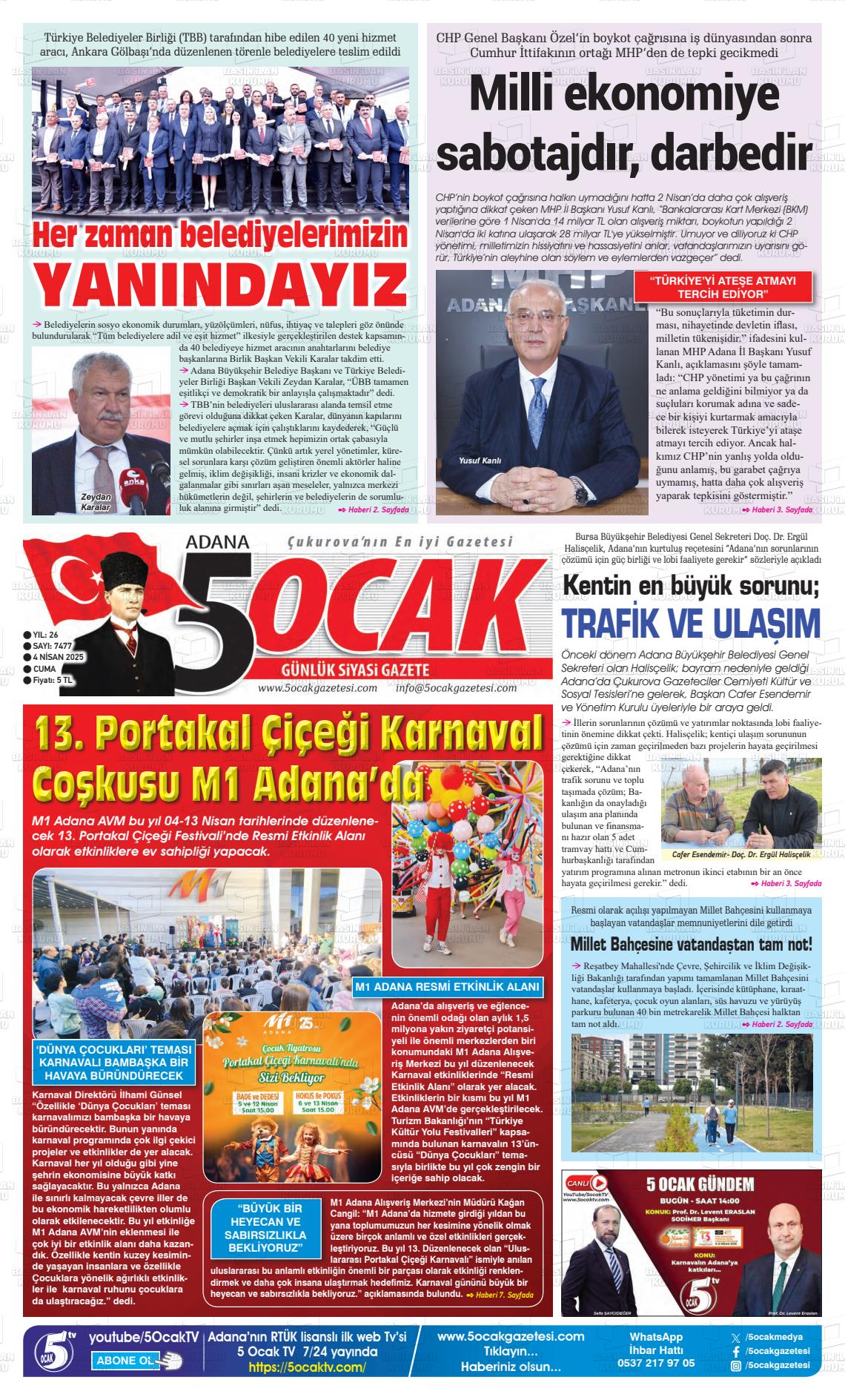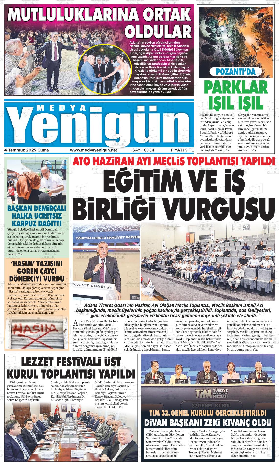 Adana Yerel Gazeteleri 09 Mart 2026, Pazartesi Günü Manşeti