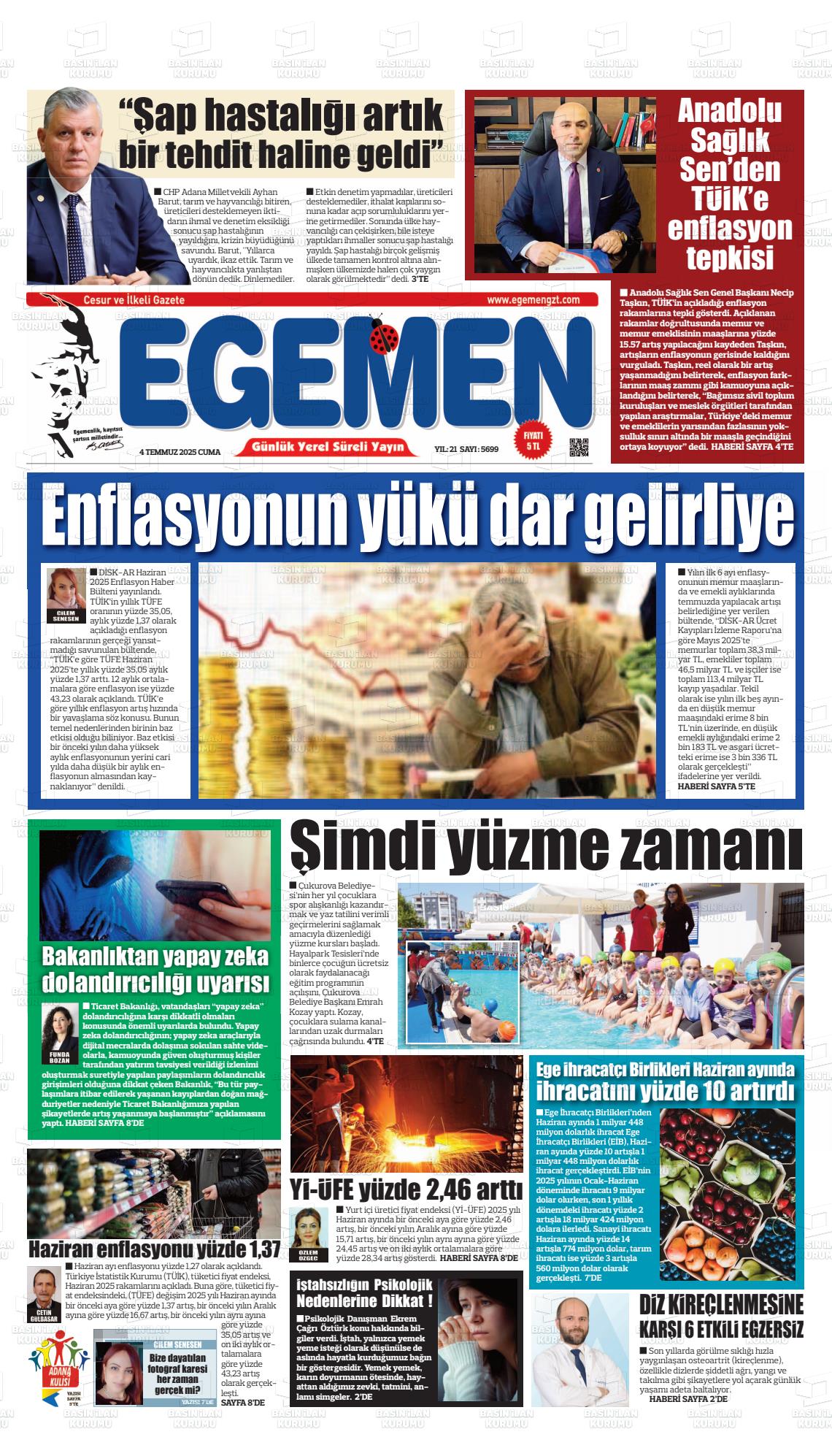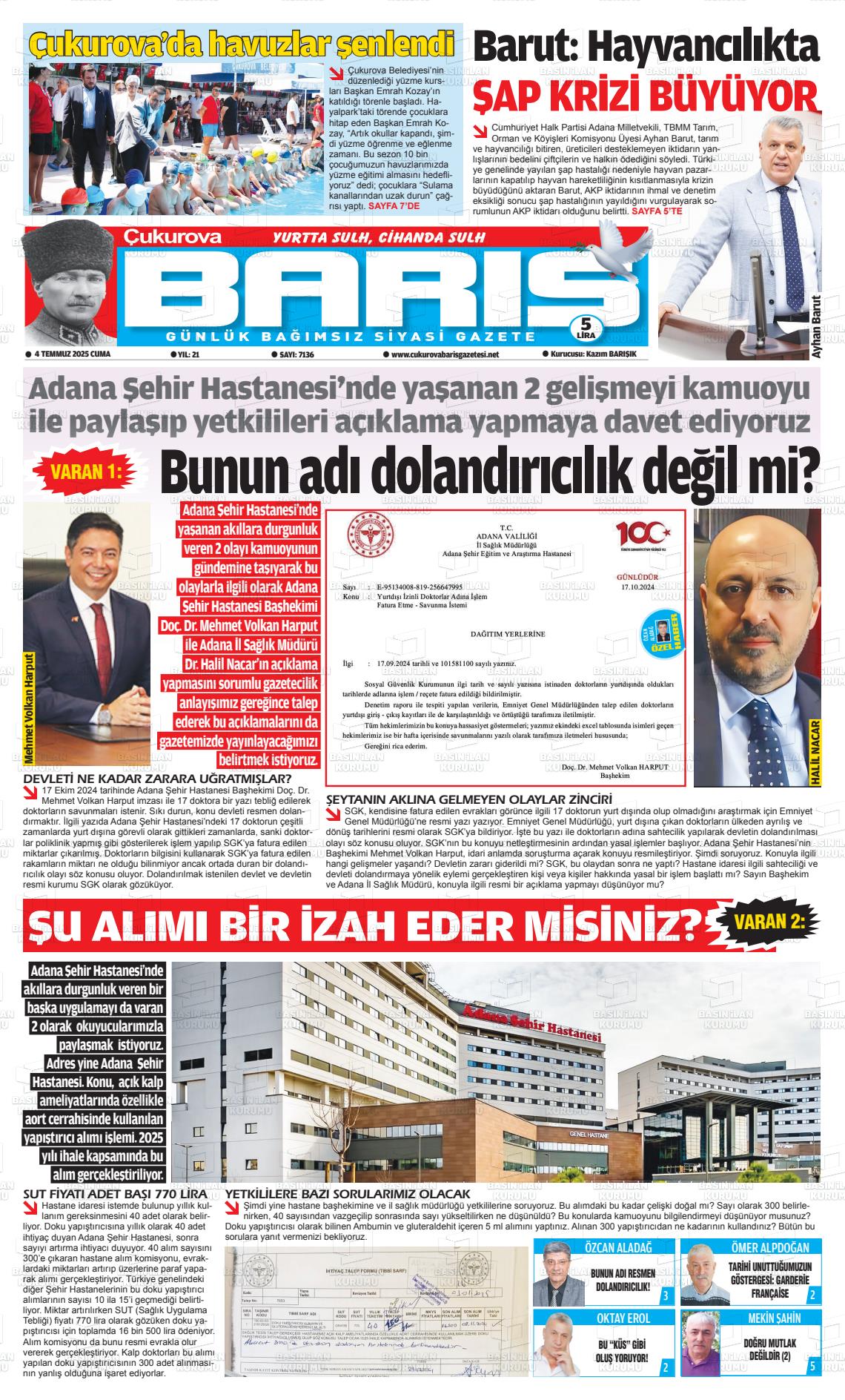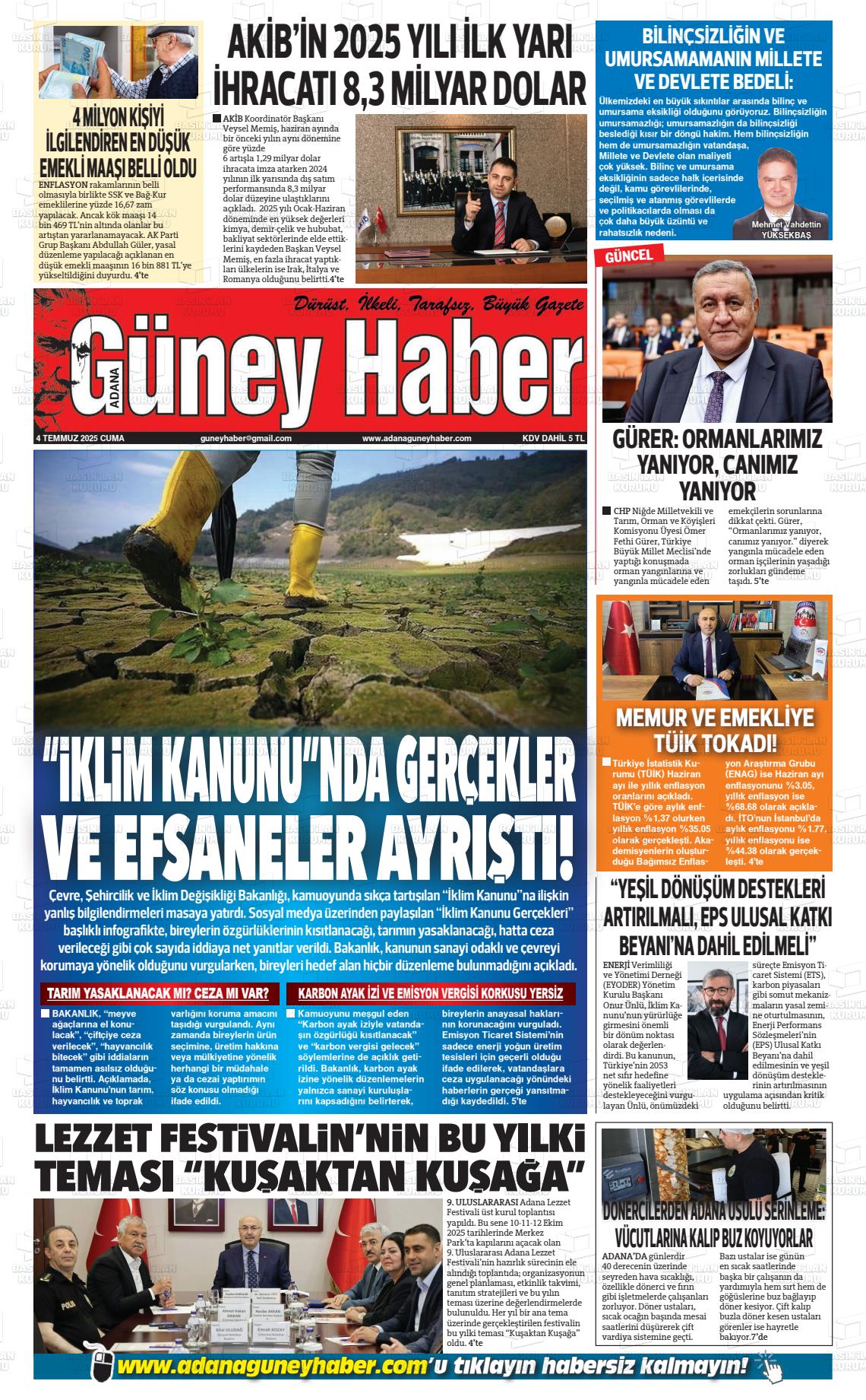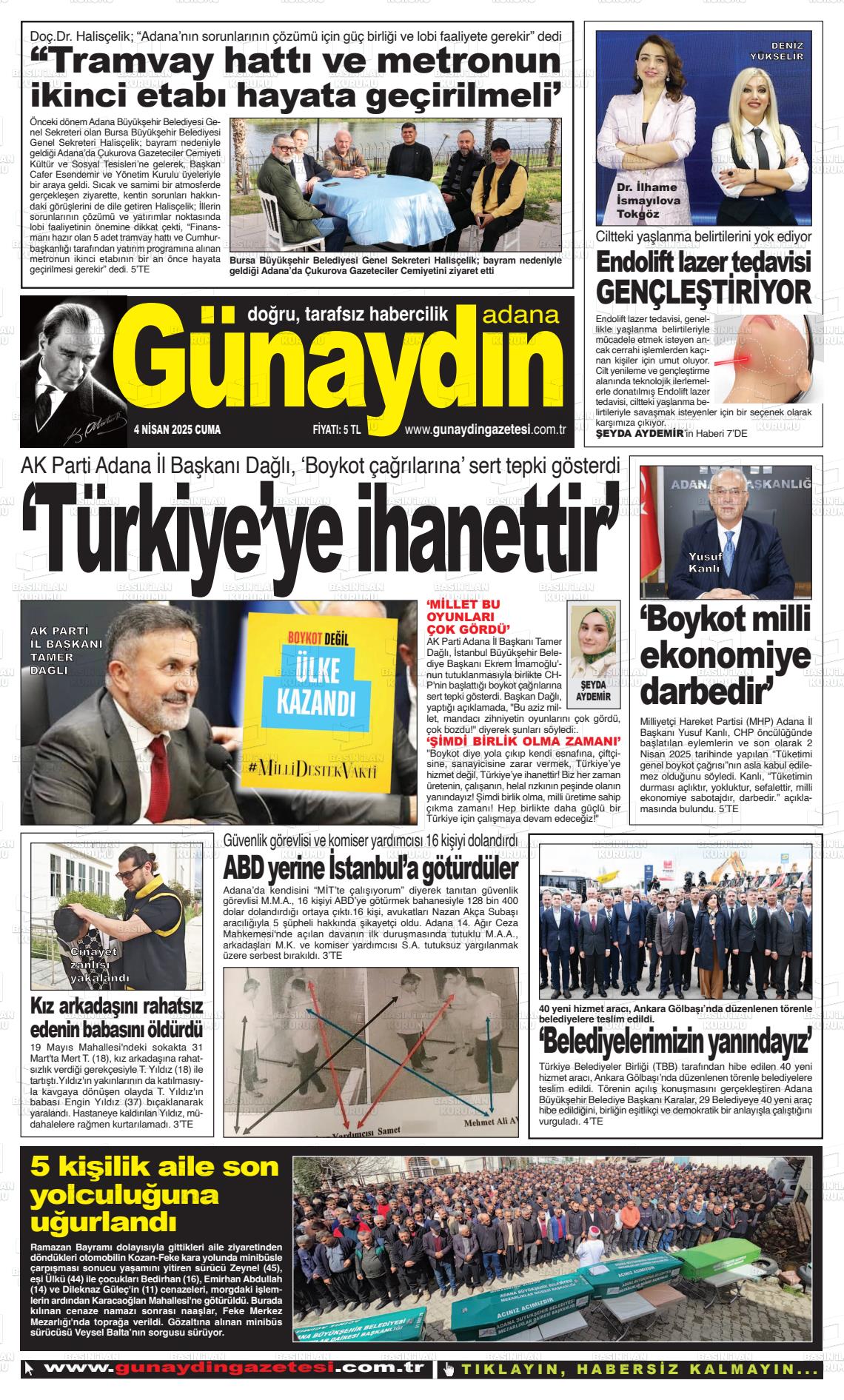 Adana Yerel Gazeteleri 09 Mart 2026, Pazartesi Günü Manşeti