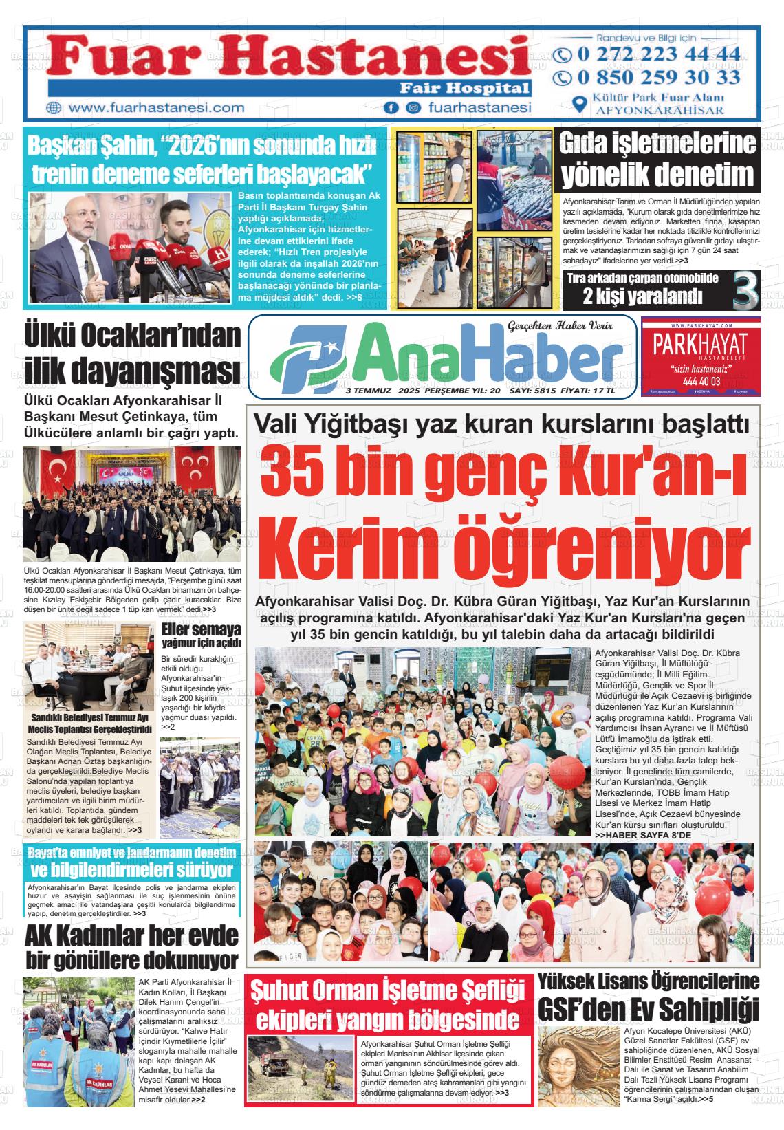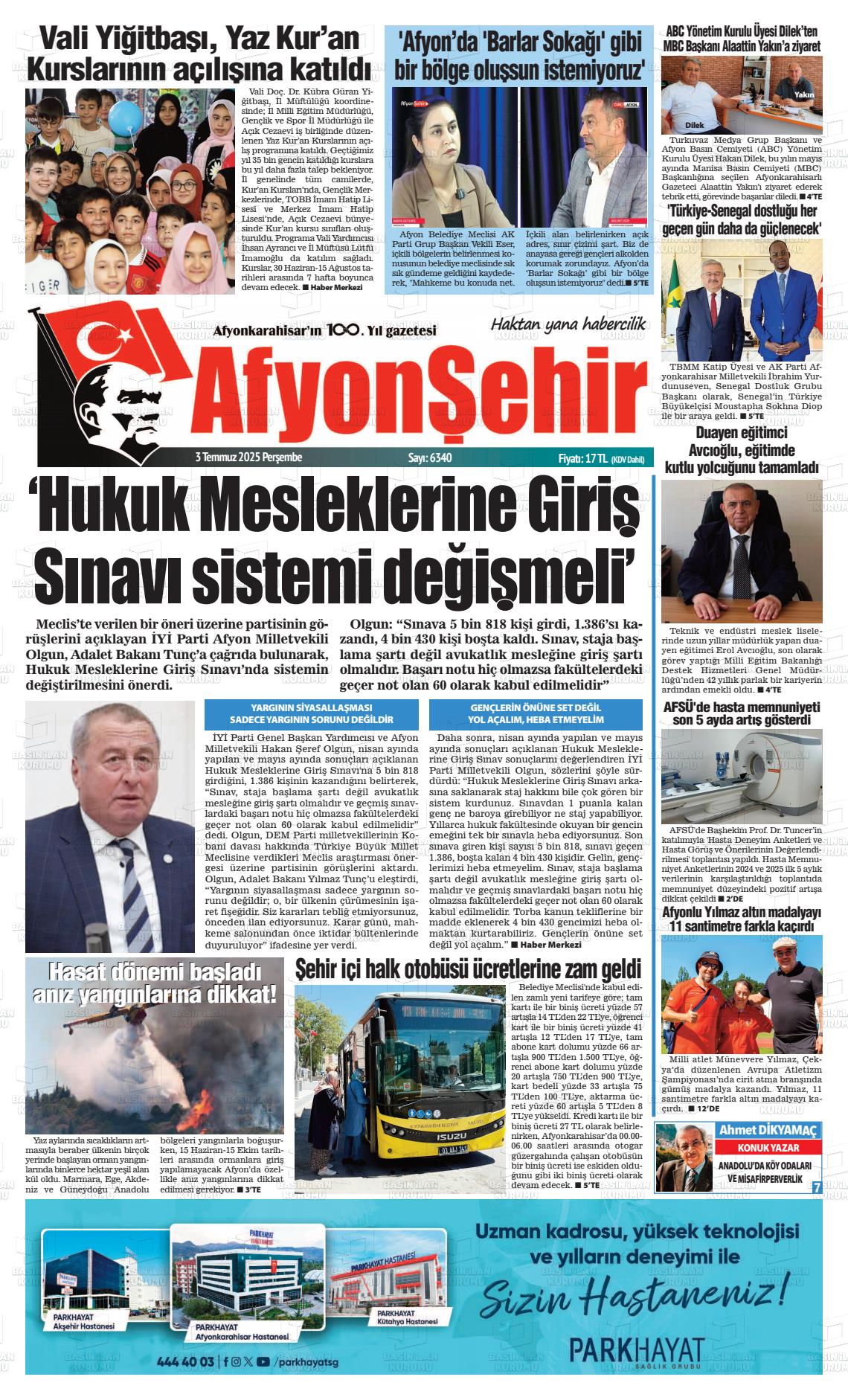 Afyonkarahİsar Yerel Gazeteleri 09 Mart 2026, Pazartesi Günü Manşeti