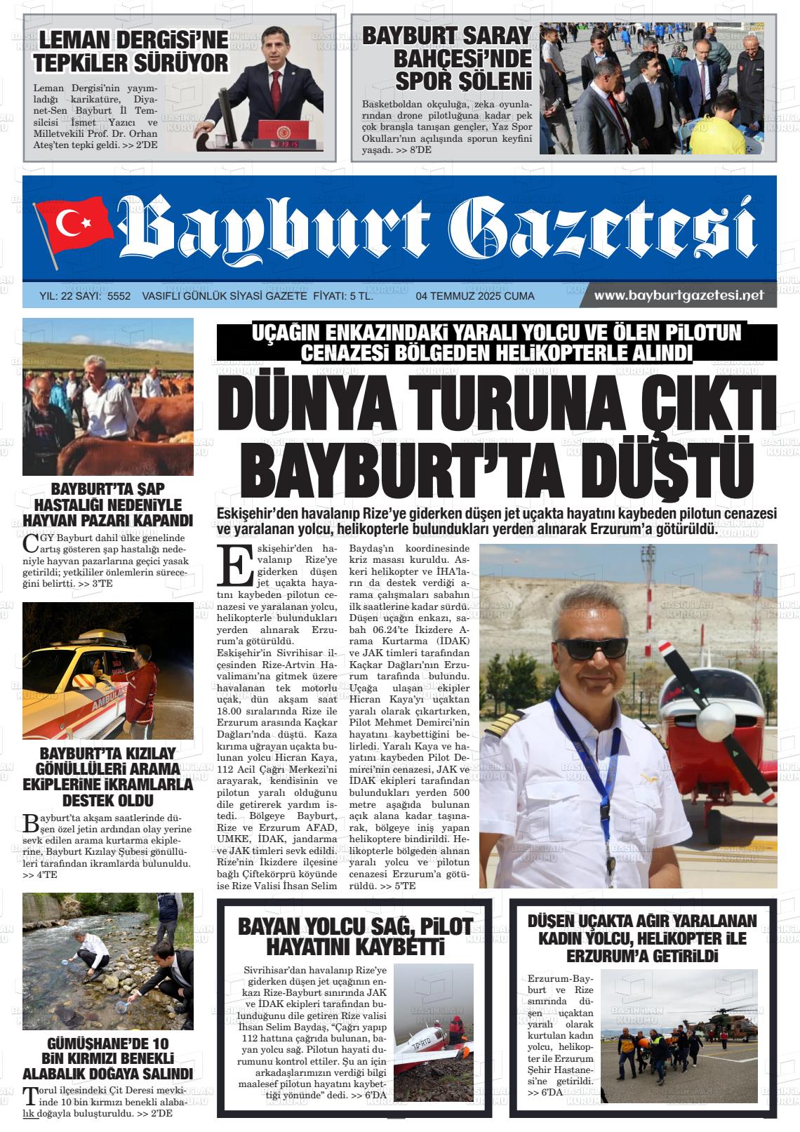 Bayburt Yerel Gazeteleri 09 Mart 2026, Pazartesi Günü Manşeti