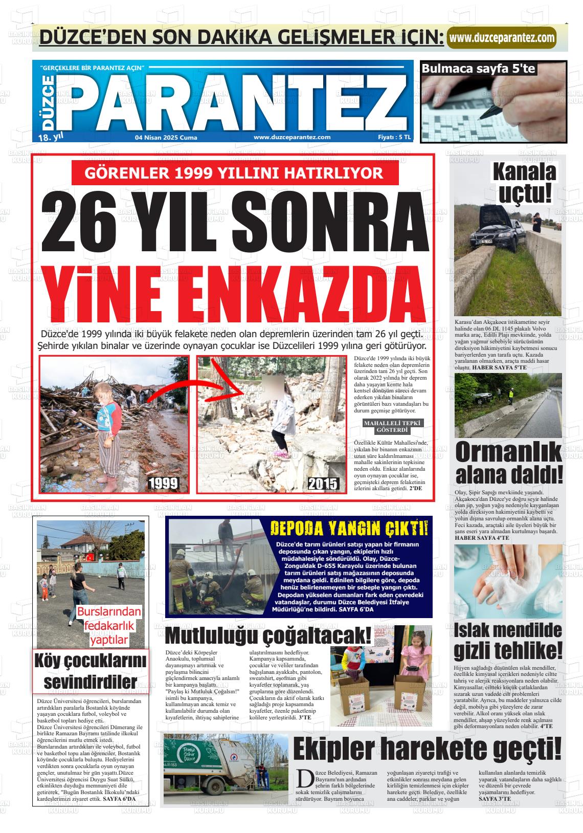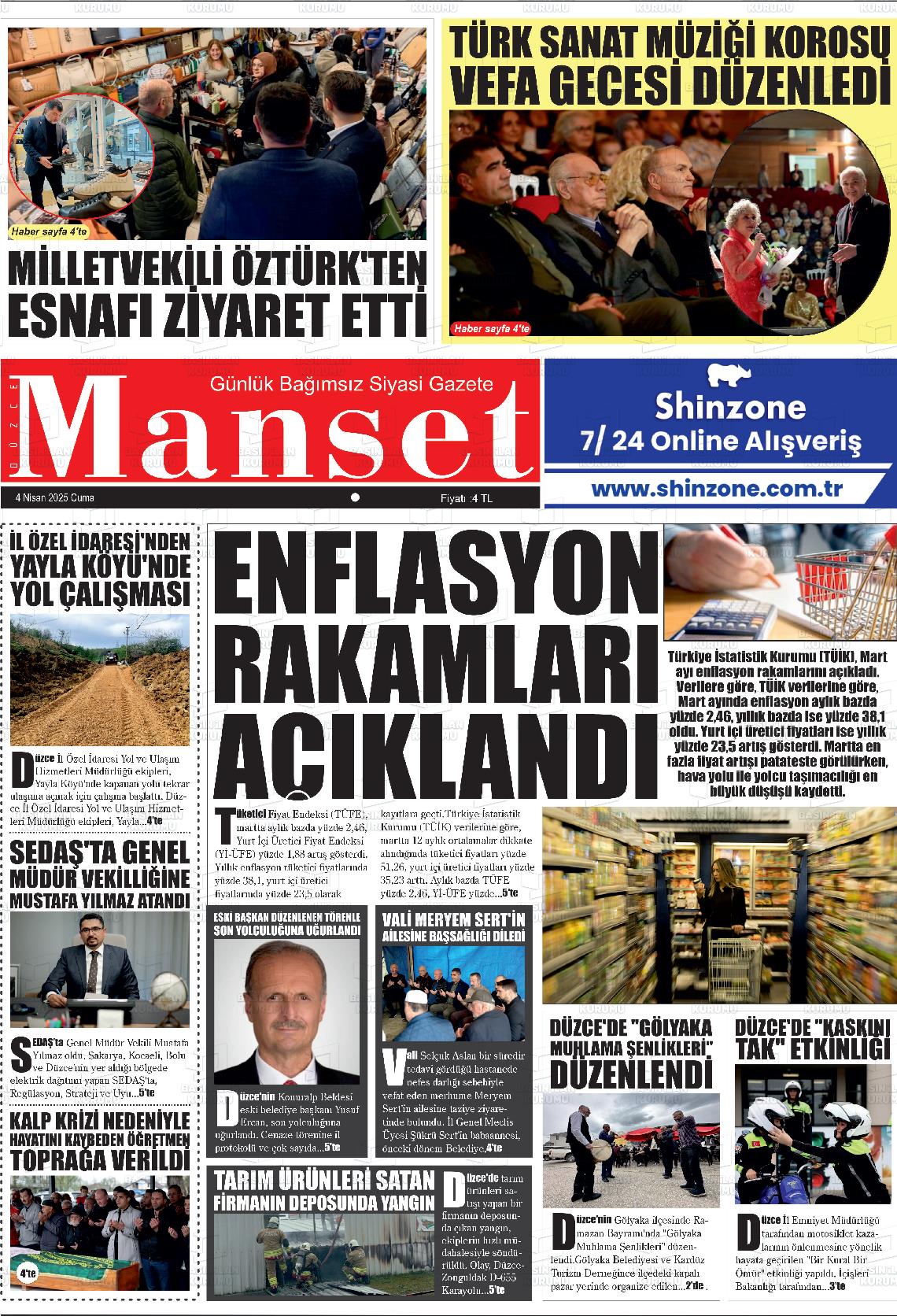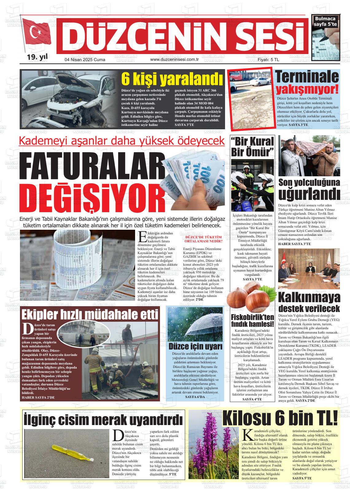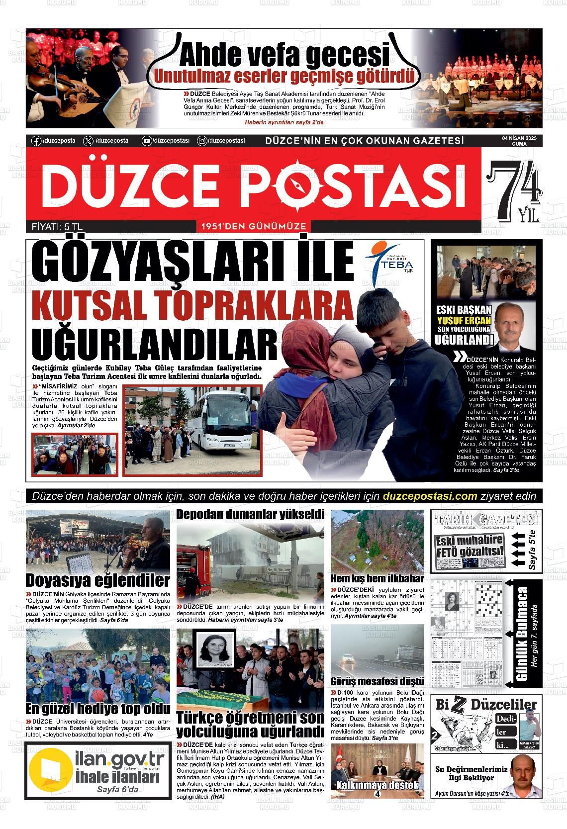 Düzce Yerel Gazeteleri 09 Mart 2026, Pazartesi Günü Manşeti