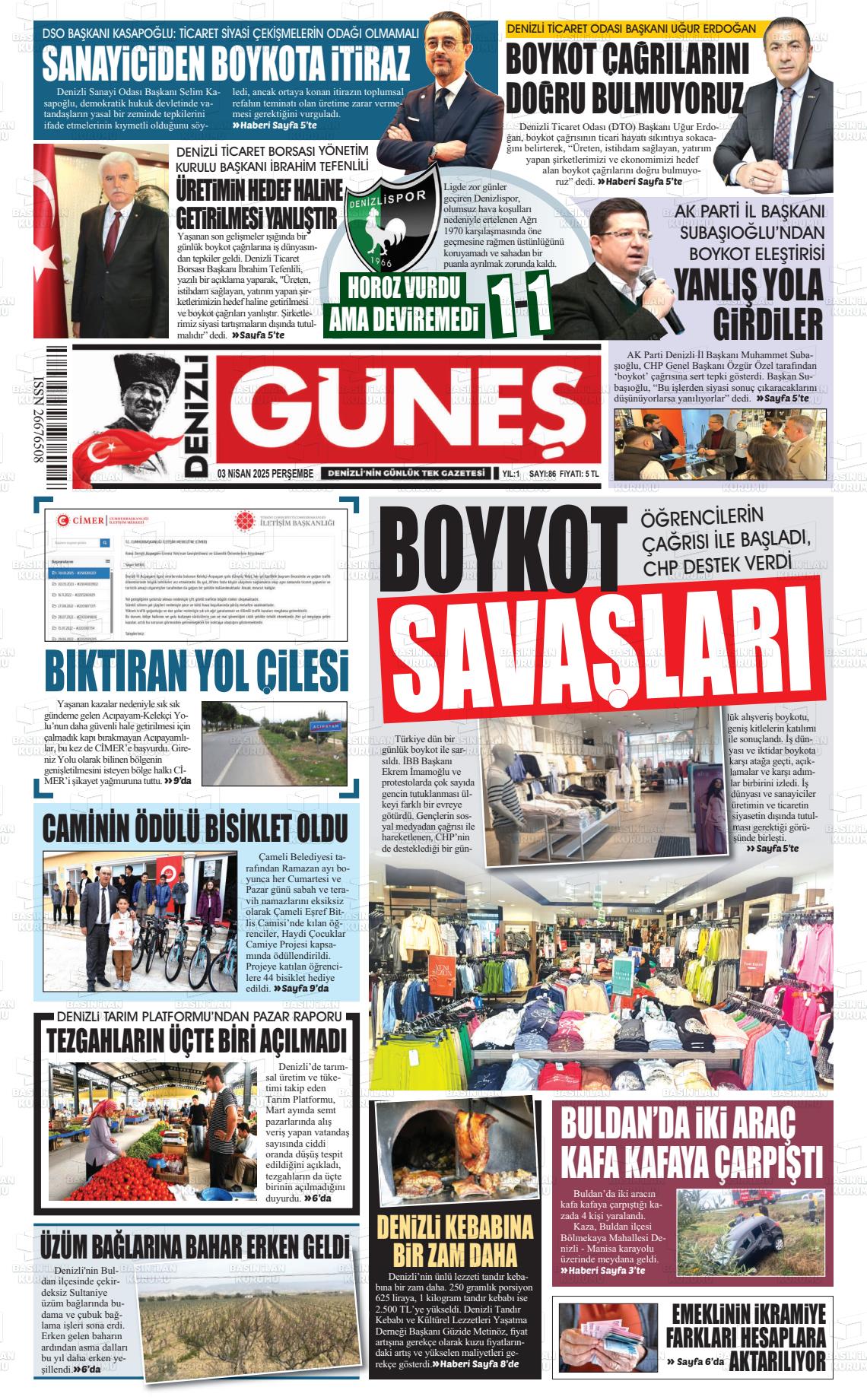 Denİzlİ Yerel Gazeteleri 09 Mart 2026, Pazartesi Günü Manşeti