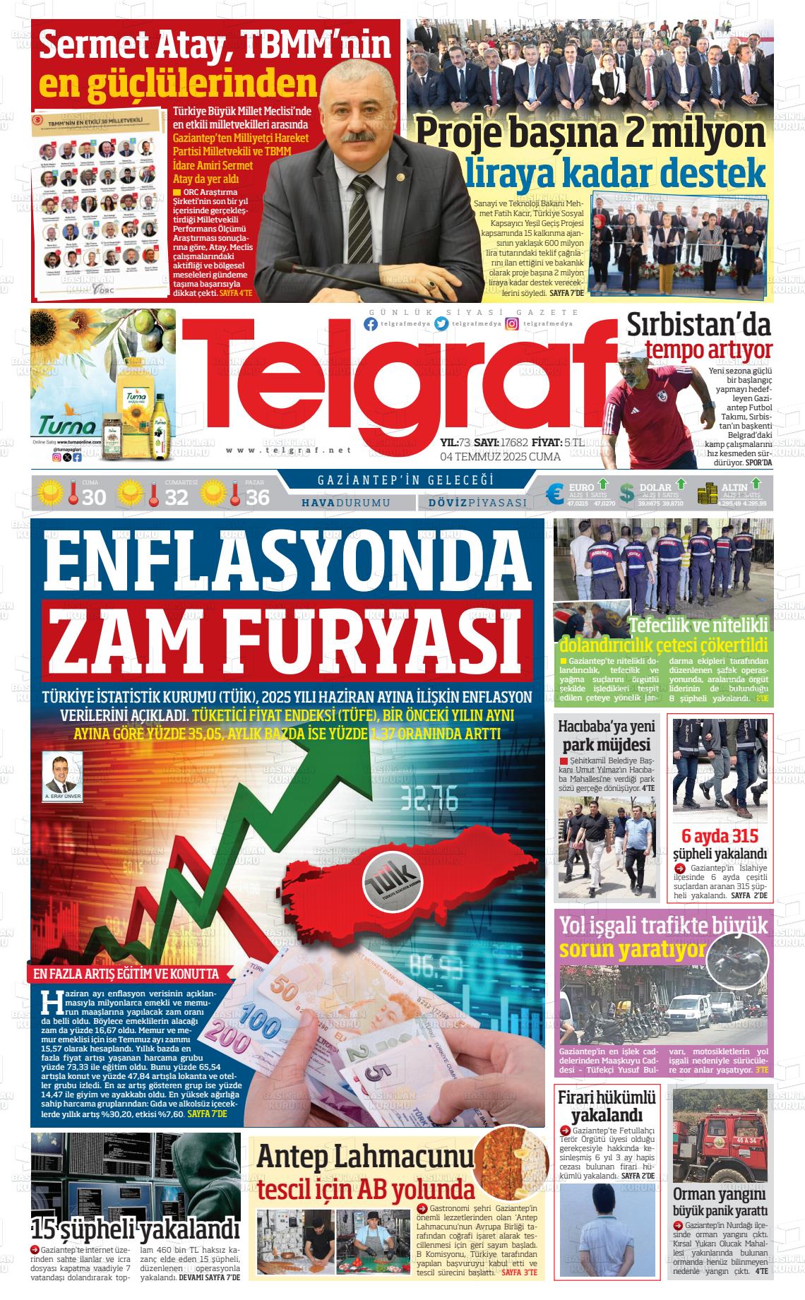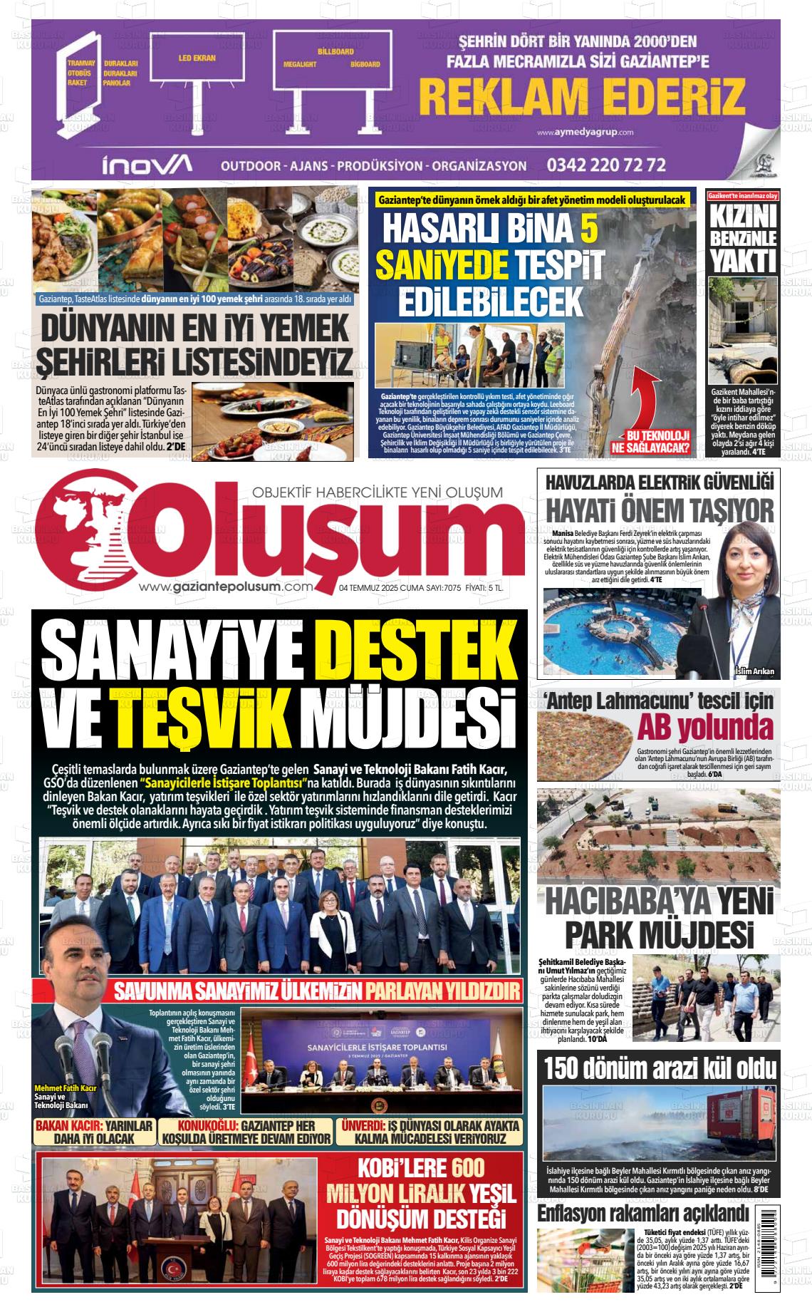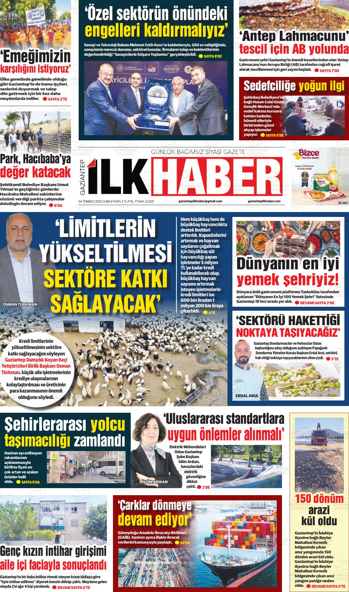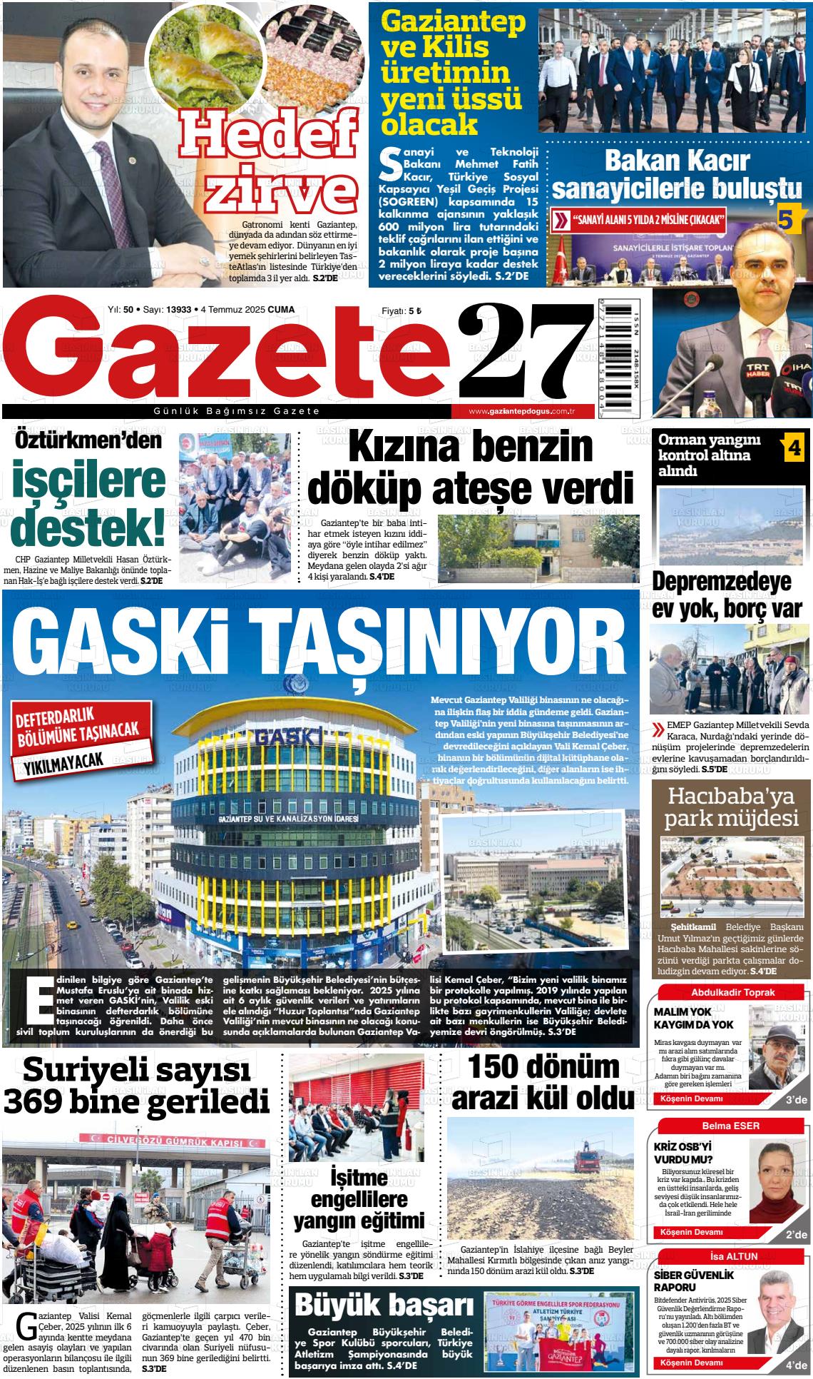 Gazİantep Yerel Gazeteleri 09 Mart 2026, Pazartesi Günü Manşeti