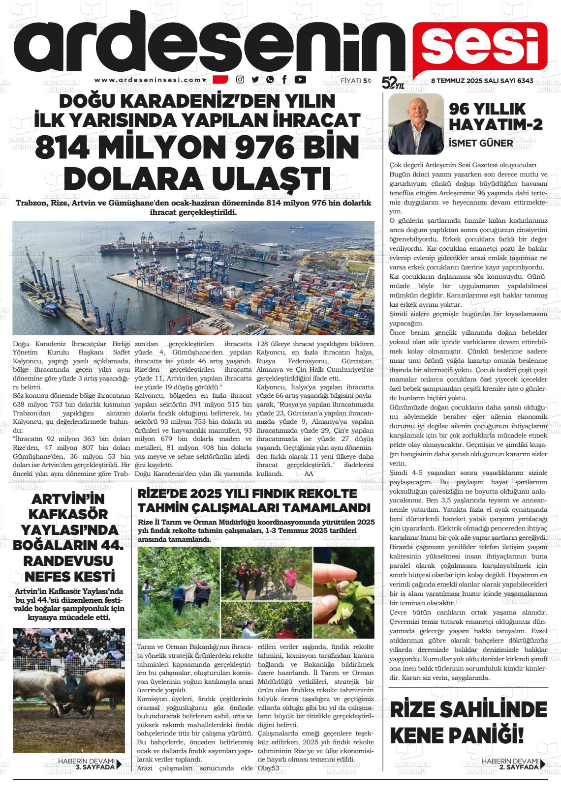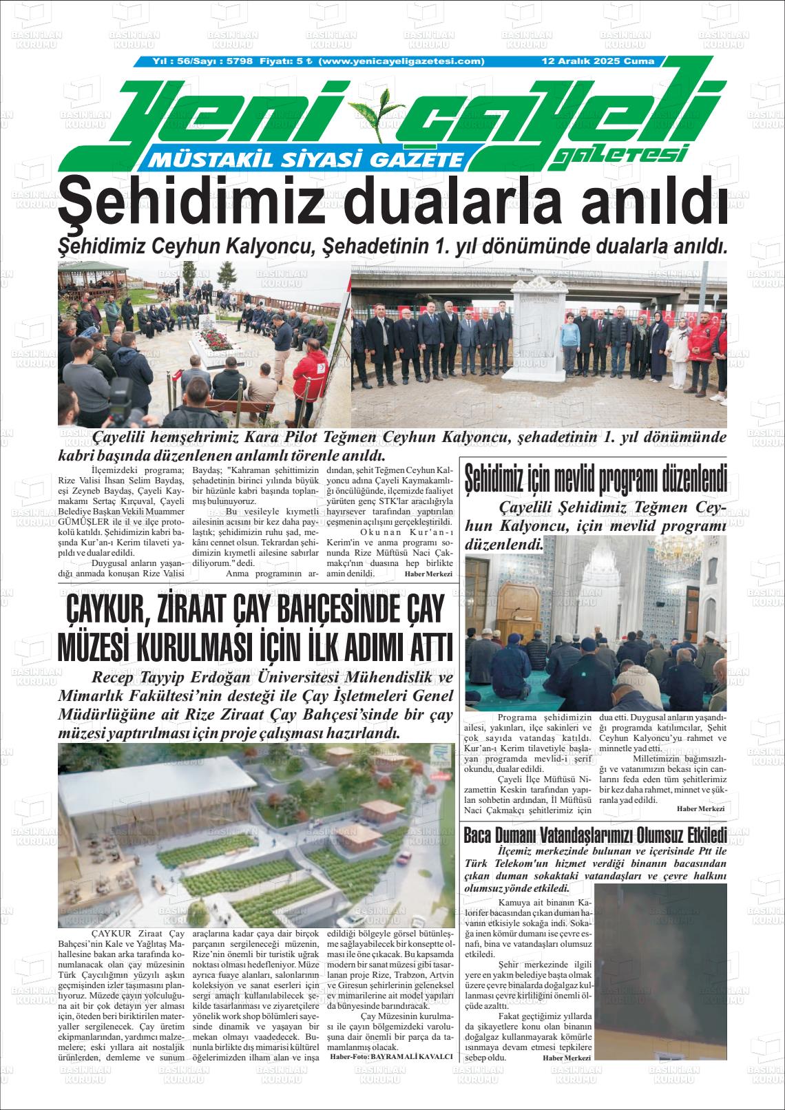 Rİze Yerel Gazeteleri 24 Nisan 2026, Cuma Günü Manşeti