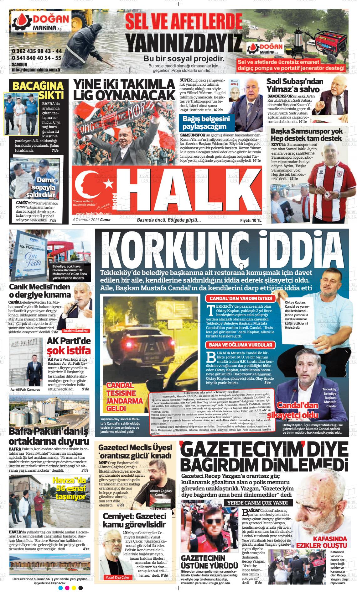 Samsun Yerel Gazeteleri 09 Mart 2026, Pazartesi Günü Manşeti