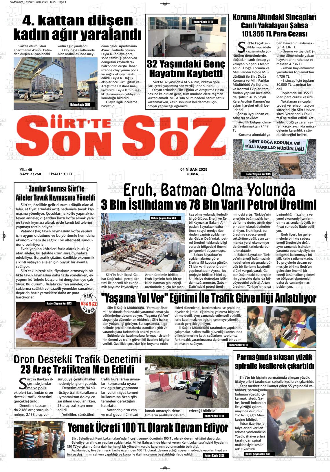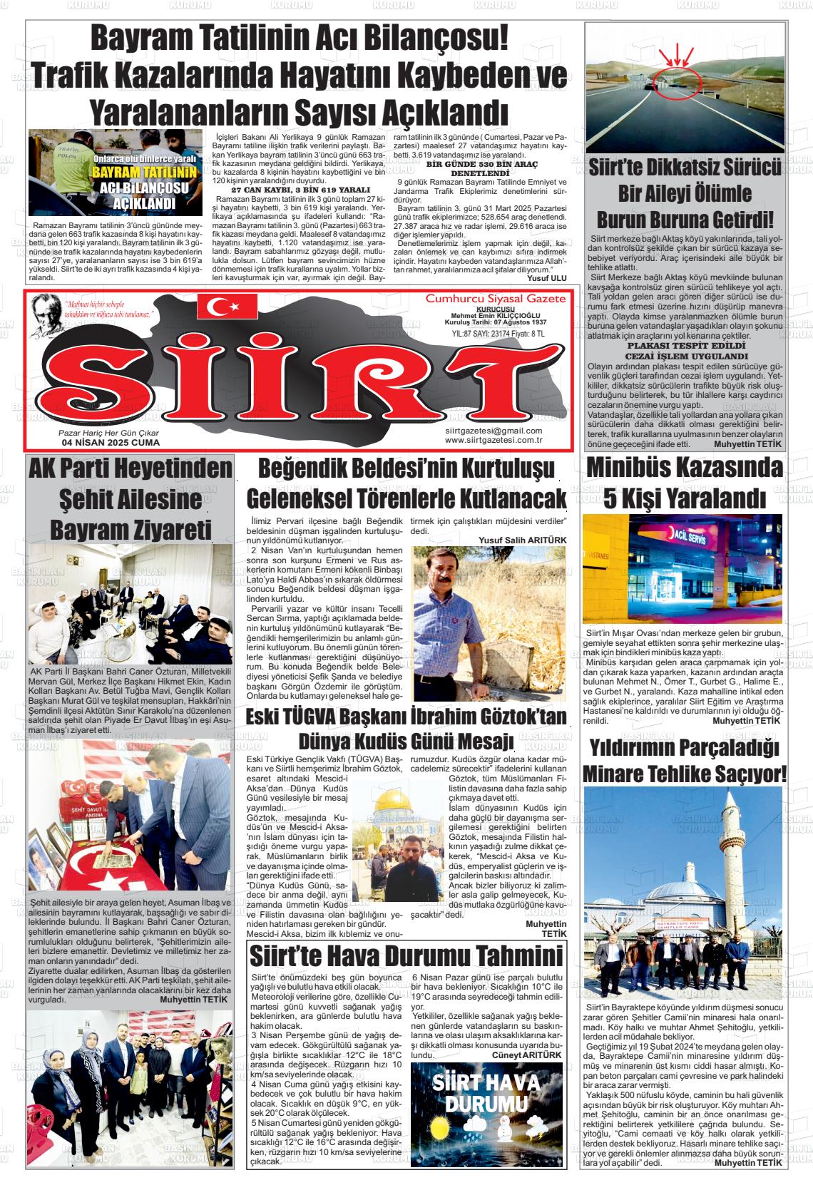 Sİİrt Yerel Gazeteleri 05 Şubat 2026, Perşembe Günü Manşeti