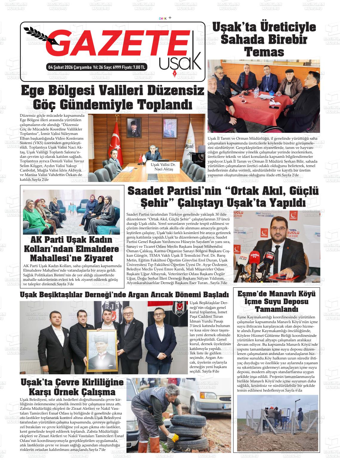 Uşak Yerel Gazeteleri 05 Şubat 2026, Perşembe Günü Manşeti