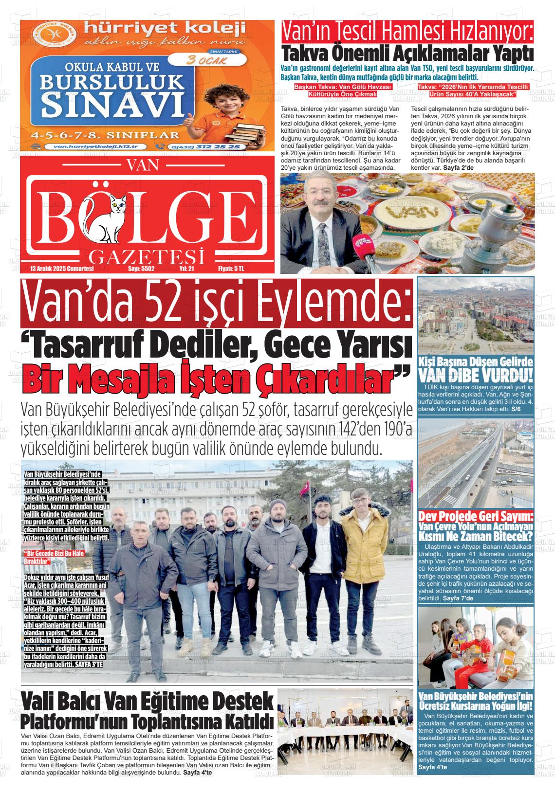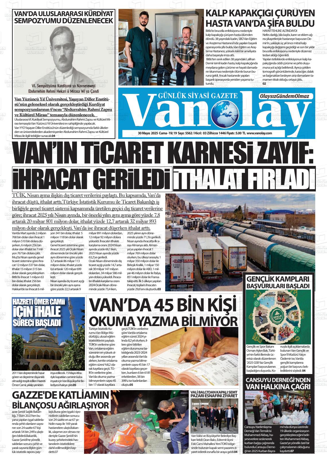 Van Yerel Gazeteleri 05 Şubat 2026, Perşembe Günü Manşeti